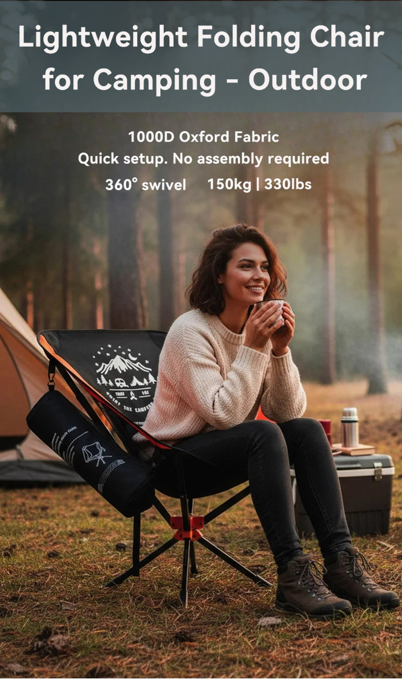 360° Swivel Lightweight Camping Chair - 30s Setup, 330lbs Capacity